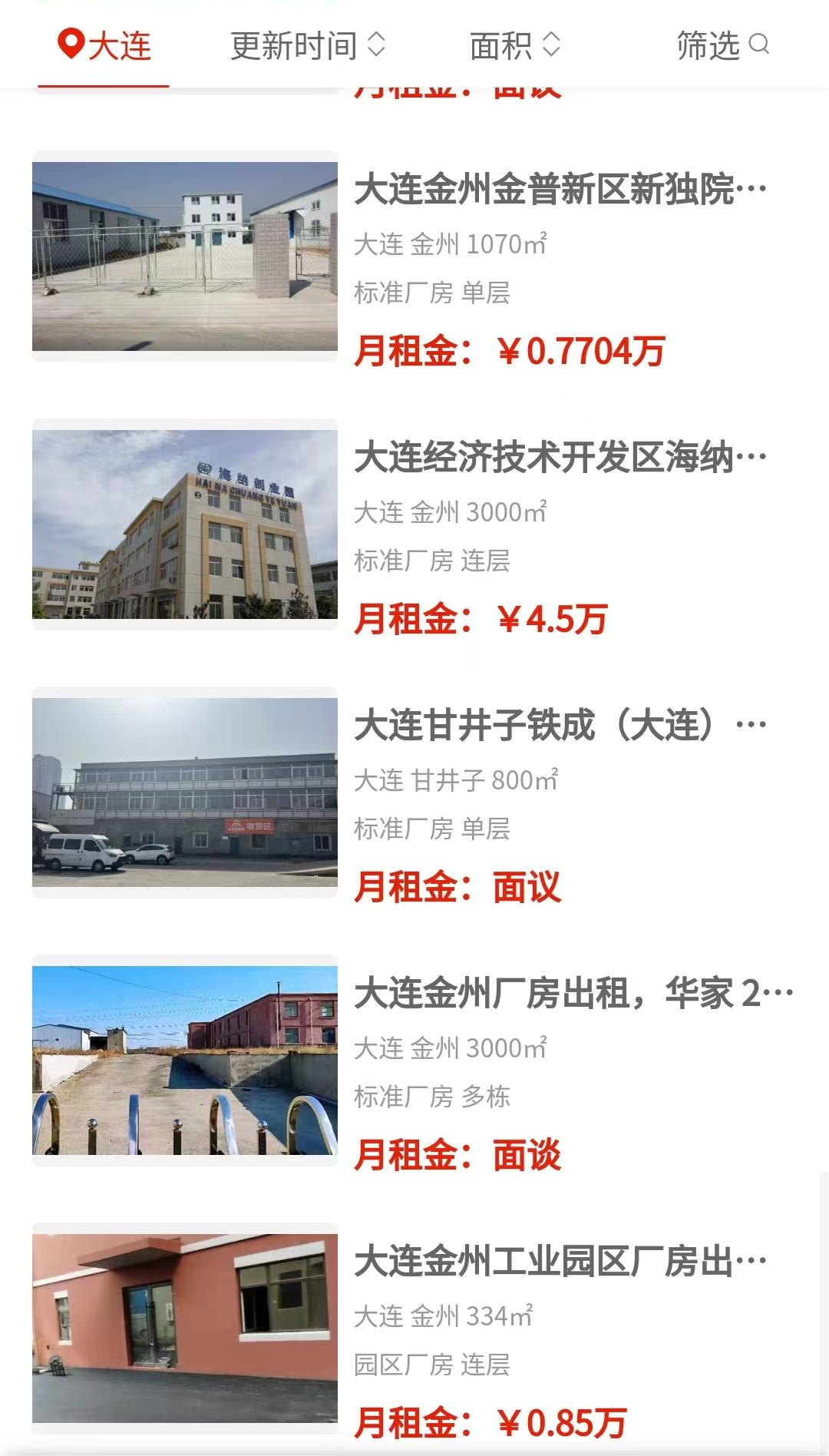 金州和金普新区:房源最多,大小都有,还有超大综合场地