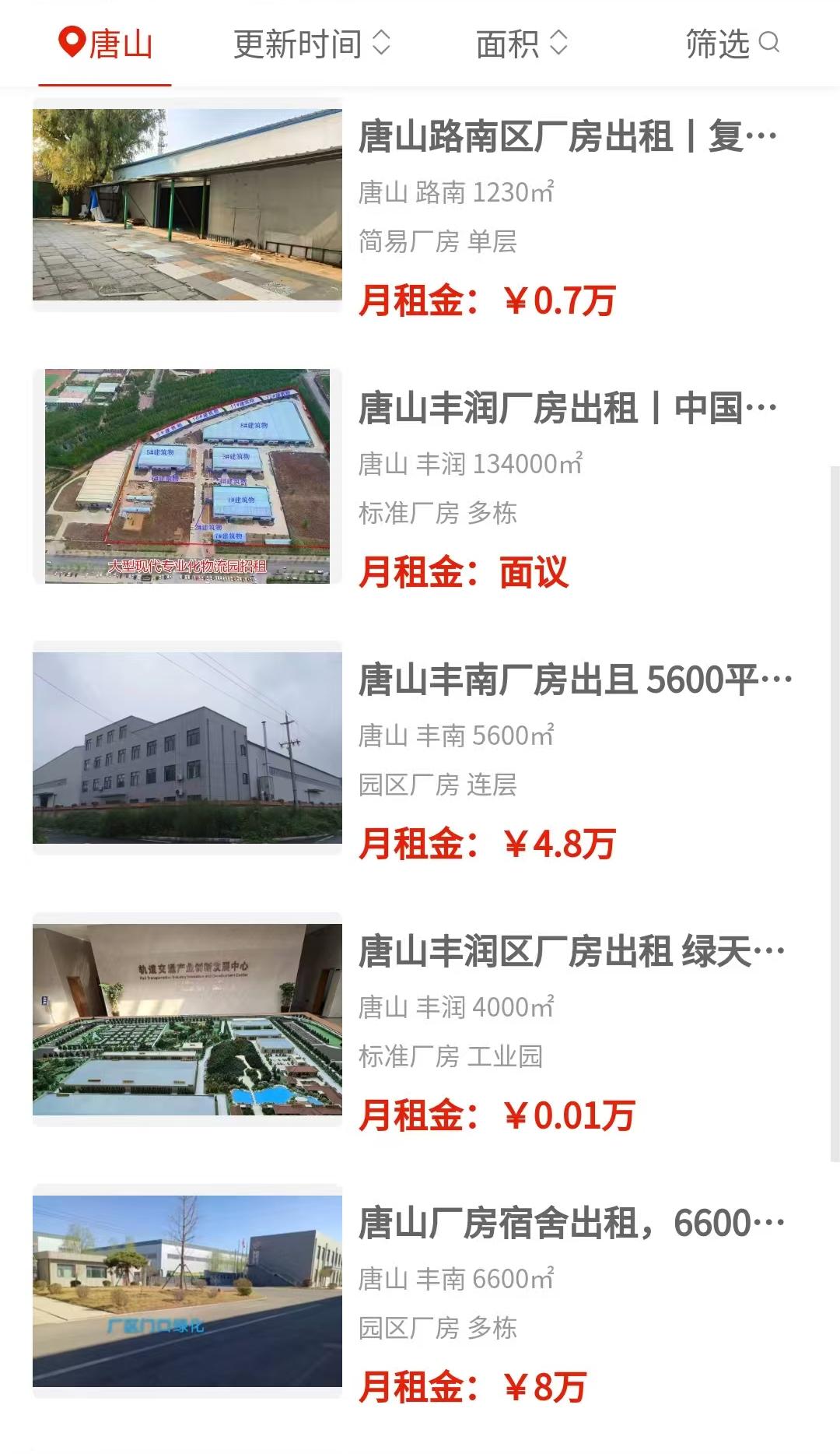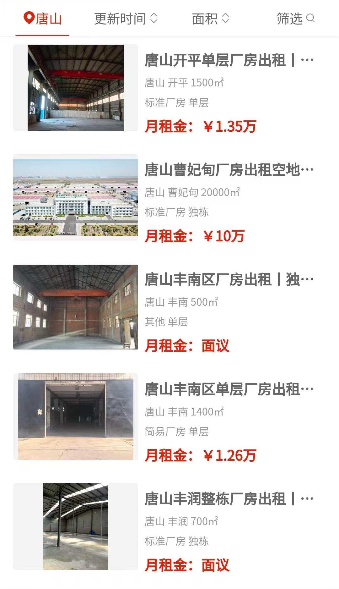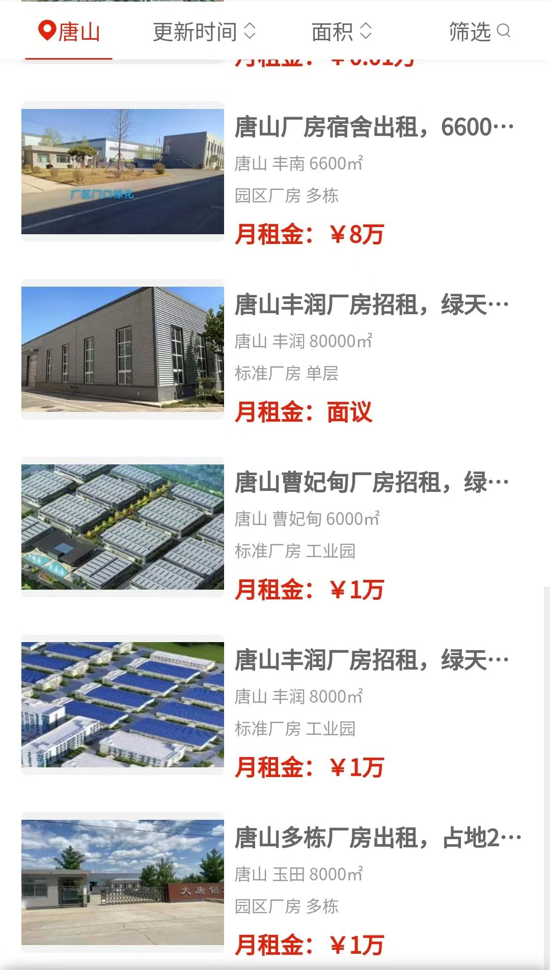 路南区复兴路那边有个仓库带大院,面积1230平,月租7000块,做仓储挺划算。玉田方向有多栋园区厂房,占地20亩或45亩,总面积8000平,简装,可租可售,月租标1万。